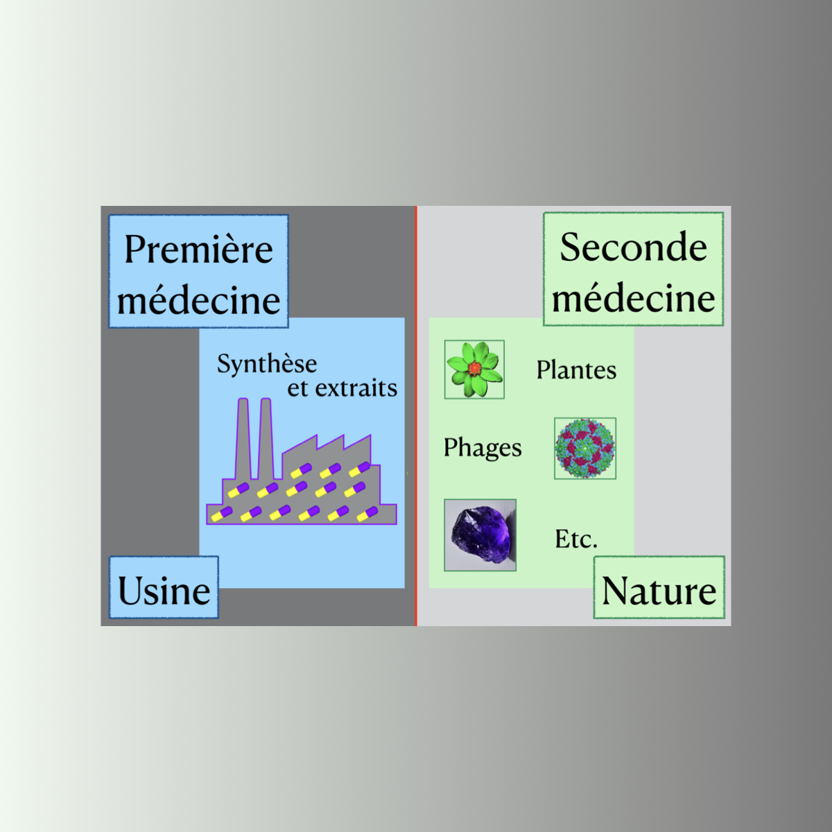 Dans le paradigme de la Première médecine, on travaille essentiellement sur le lien « un médicament <-> une maladie ». On fait des Etudes randomisées en double aveugle.(3)